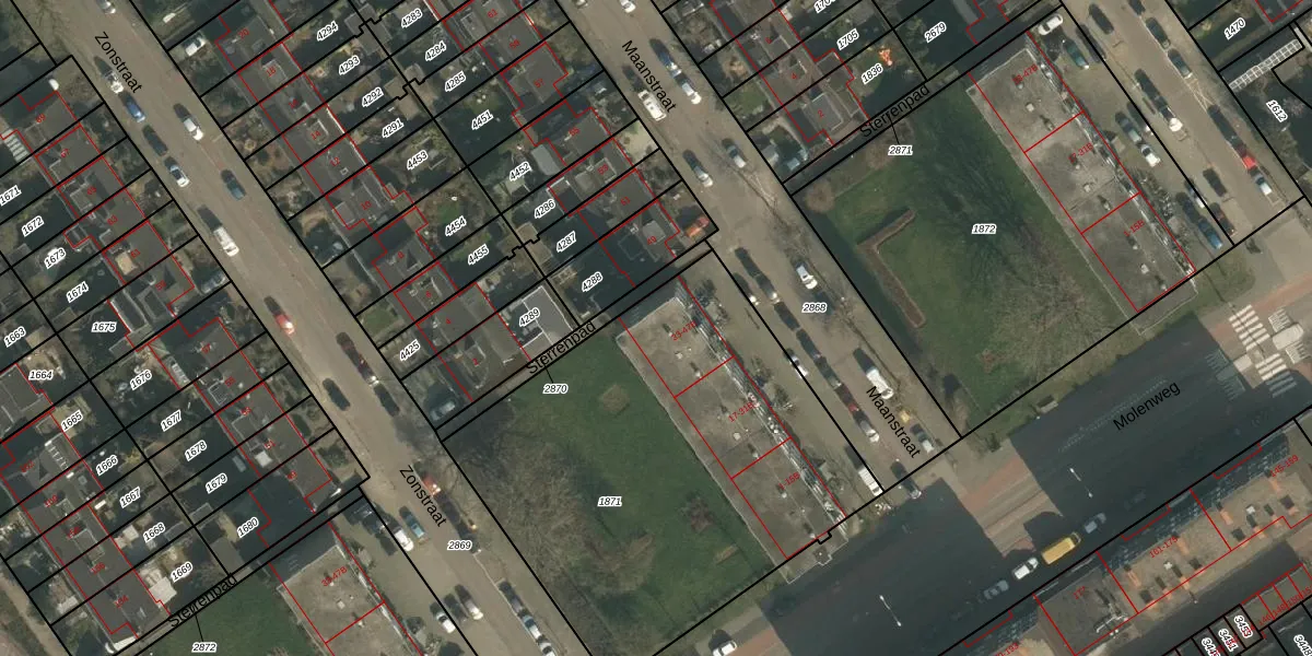 Maanstraat 45 is gelegen op kadastraal perceel NBH00H1871. Deze kadastrale aanduiding is uniek en wordt gebruikt door het Kadaster om eigendomsrechten en andere zakelijke rechten vast te leggen. Het perceel maakt onderdeel uit van de kadastrale gemeente Neerbosch.