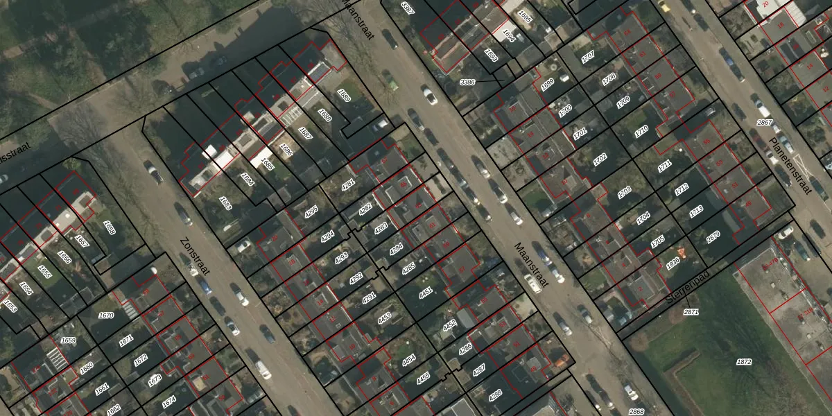 Het perceel waarop Maanstraat 63 staat heeft een oppervlakte van 148 m². Dit is een middelgroot perceel. De perceeloppervlakte wordt geregistreerd door het Kadaster. Gedetailleerde informatie over de maten van dit perceel kunt u vinden in het rapport Kadastrale kaart met maatvoering van Maanstraat 63.