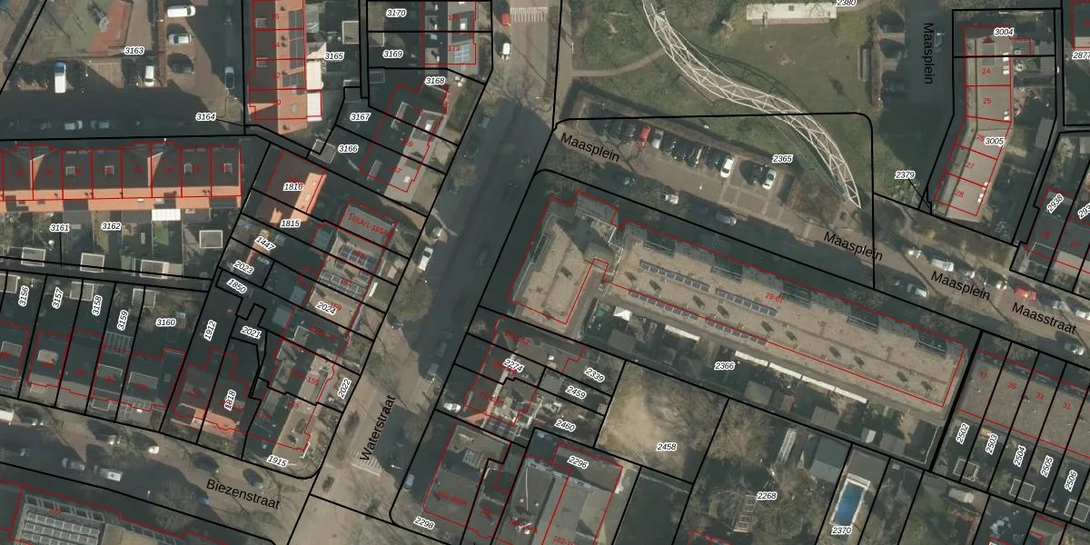 Maasplein 39 is gelegen op kadastraal perceel NBH00A2366. Deze kadastrale aanduiding is uniek en wordt gebruikt door het Kadaster om eigendomsrechten en andere zakelijke rechten vast te leggen. Het perceel maakt onderdeel uit van de kadastrale gemeente Neerbosch.