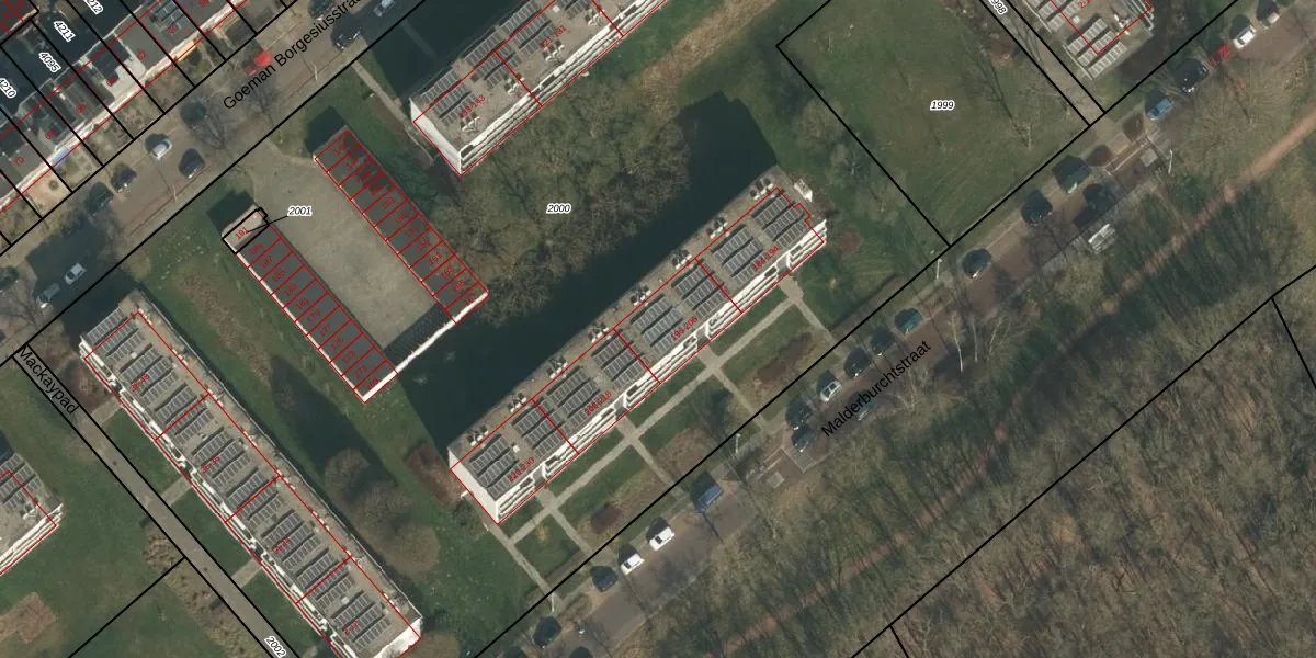 Het perceel waarop Malderburchtstraat 200 staat heeft een oppervlakte van 1,0 ha. Dit is een zeer groot perceel. De perceeloppervlakte wordt geregistreerd door het Kadaster. Gedetailleerde informatie over de maten van dit perceel kunt u vinden in het rapport Kadastrale kaart met maatvoering van Malderburchtstraat 200.