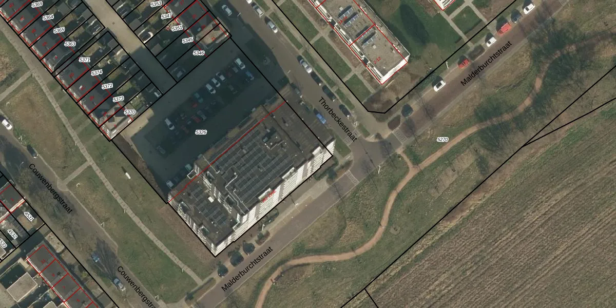 Het perceel waarop Malderburchtstraat 286-F staat heeft een oppervlakte van 2585 m². Dit is een zeer groot perceel. De perceeloppervlakte wordt geregistreerd door het Kadaster. Gedetailleerde informatie over de maten van dit perceel kunt u vinden in het rapport Kadastrale kaart met maatvoering van Malderburchtstraat 286-F.