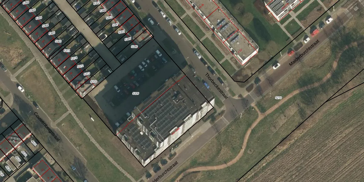 Malderburchtstraat 294-C is gelegen op kadastraal perceel HTT02D5326. Deze kadastrale aanduiding is uniek en wordt gebruikt door het Kadaster om eigendomsrechten en andere zakelijke rechten vast te leggen. Het perceel maakt onderdeel uit van de kadastrale gemeente Hatert.