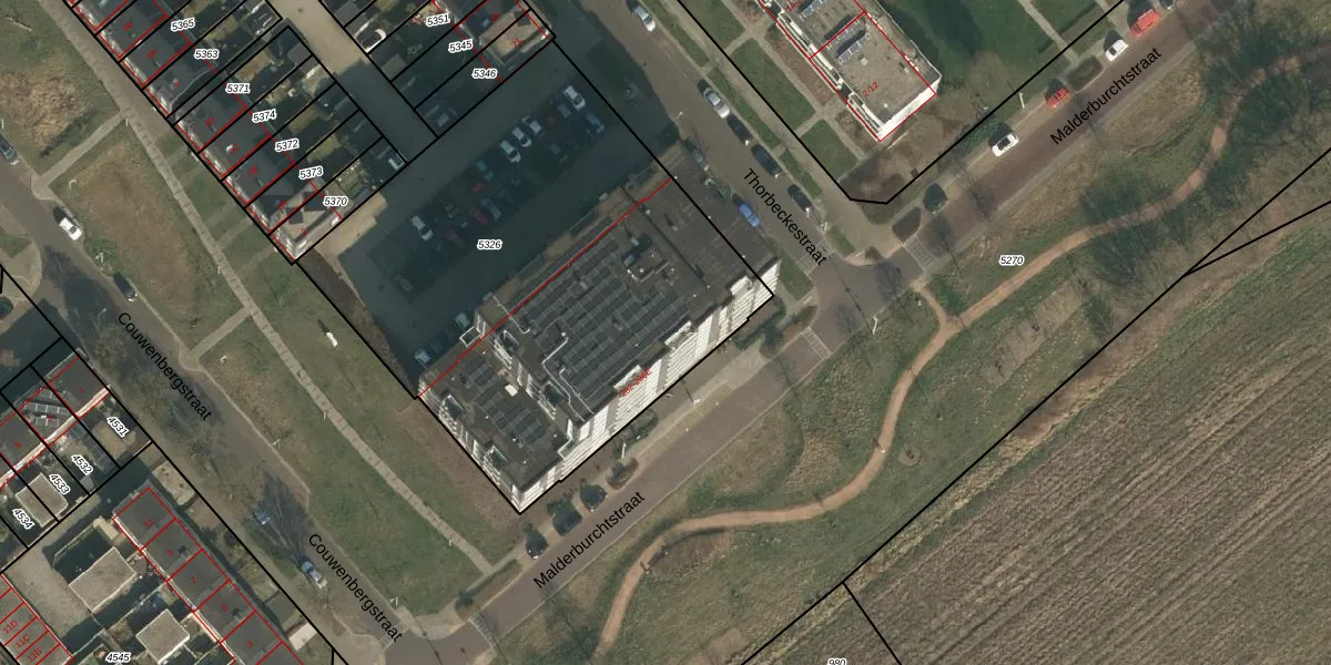 Malderburchtstraat 296-C is gelegen op kadastraal perceel HTT02D5326. Deze kadastrale aanduiding is uniek en wordt gebruikt door het Kadaster om eigendomsrechten en andere zakelijke rechten vast te leggen. Het perceel maakt onderdeel uit van de kadastrale gemeente Hatert.