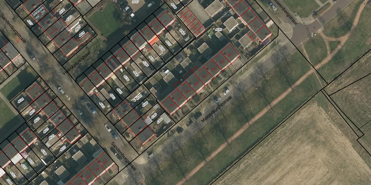 Het perceel waarop Malderburchtstraat 312 staat heeft een oppervlakte van 2724 m². Dit is een zeer groot perceel. De perceeloppervlakte wordt geregistreerd door het Kadaster. Gedetailleerde informatie over de maten van dit perceel kunt u vinden in het rapport Kadastrale kaart met maatvoering van Malderburchtstraat 312.