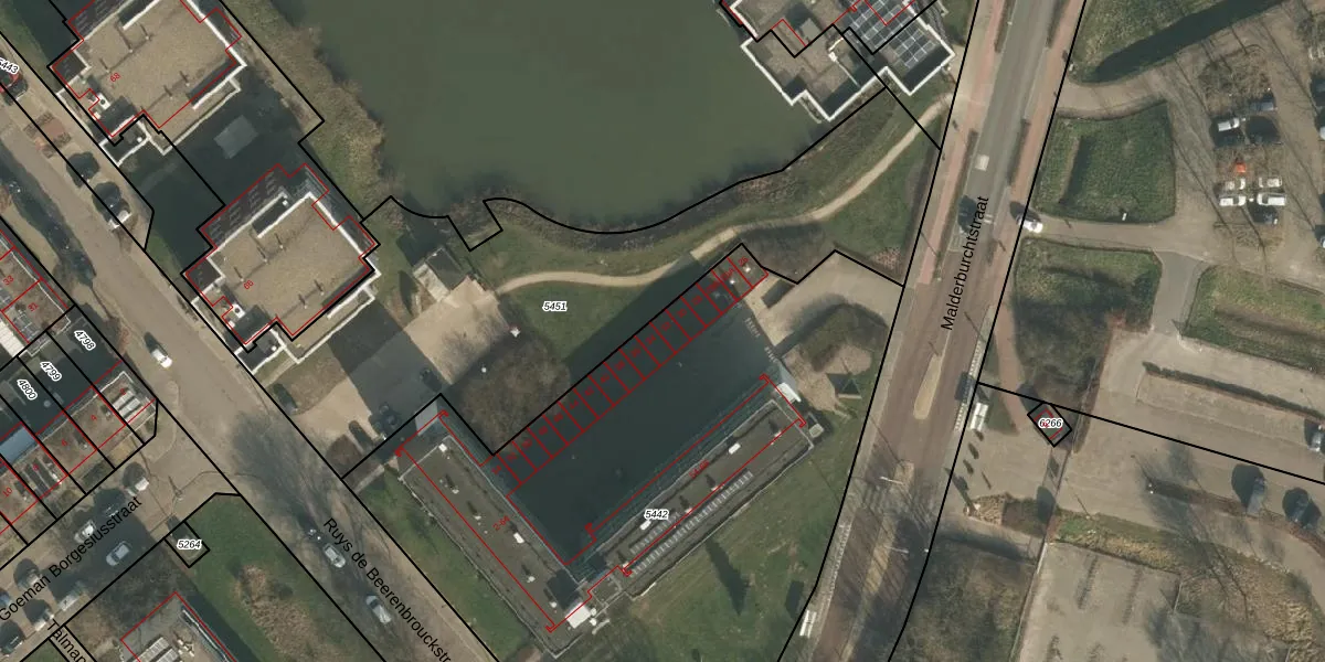 Het perceel waarop Malderburchtstraat 32 staat heeft een oppervlakte van 3776 m². Dit is een zeer groot perceel. De perceeloppervlakte wordt geregistreerd door het Kadaster. Gedetailleerde informatie over de maten van dit perceel kunt u vinden in het rapport Kadastrale kaart met maatvoering van Malderburchtstraat 32.