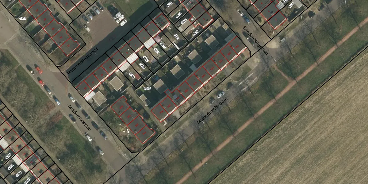 Het perceel waarop Malderburchtstraat 330 staat heeft een oppervlakte van 2966 m². Dit is een zeer groot perceel. De perceeloppervlakte wordt geregistreerd door het Kadaster. Gedetailleerde informatie over de maten van dit perceel kunt u vinden in het rapport Kadastrale kaart met maatvoering van Malderburchtstraat 330.