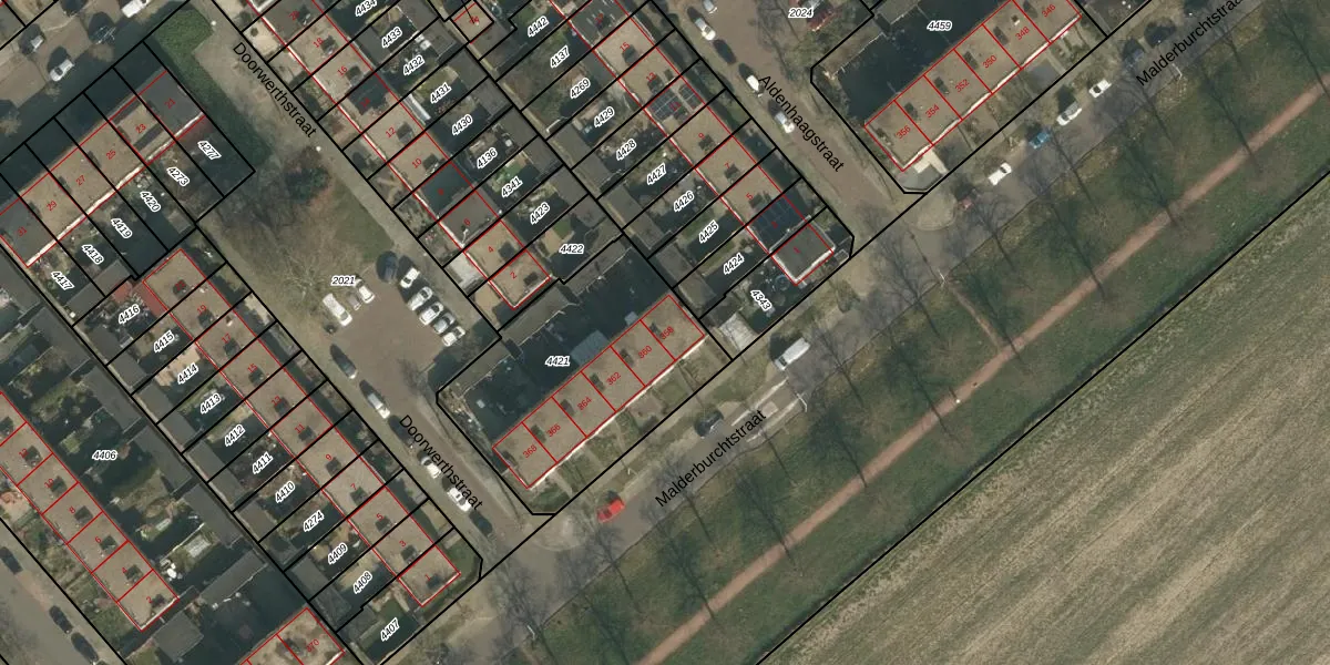 Malderburchtstraat 358 is gelegen op kadastraal perceel HTT02D4421. Deze kadastrale aanduiding is uniek en wordt gebruikt door het Kadaster om eigendomsrechten en andere zakelijke rechten vast te leggen. Het perceel maakt onderdeel uit van de kadastrale gemeente Hatert.