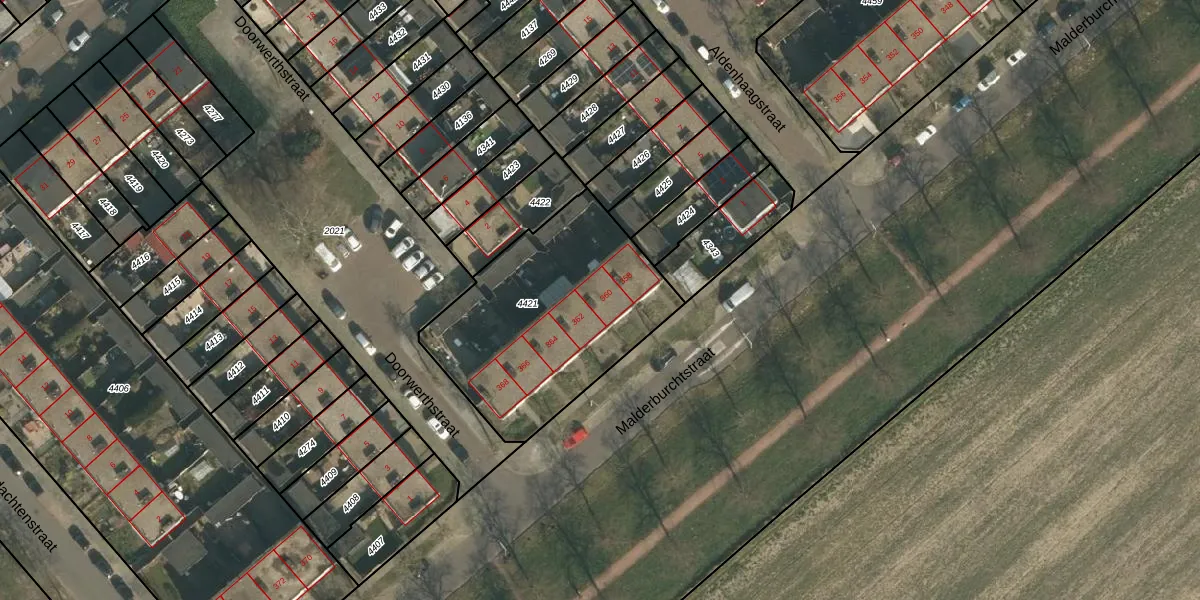 Het perceel waarop Malderburchtstraat 360 staat heeft een oppervlakte van 972 m². Dit is een groot perceel. De perceeloppervlakte wordt geregistreerd door het Kadaster. Gedetailleerde informatie over de maten van dit perceel kunt u vinden in het rapport Kadastrale kaart met maatvoering van Malderburchtstraat 360.
