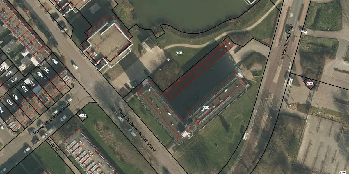 Het perceel waarop Malderburchtstraat 48 staat heeft een oppervlakte van 3776 m². Dit is een zeer groot perceel. De perceeloppervlakte wordt geregistreerd door het Kadaster. Gedetailleerde informatie over de maten van dit perceel kunt u vinden in het rapport Kadastrale kaart met maatvoering van Malderburchtstraat 48.