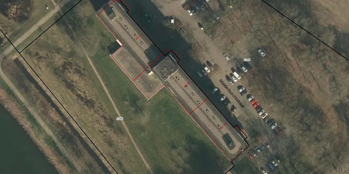 Het perceel waarop Malderburchtstraat 546 staat heeft een oppervlakte van 8547 m². Dit is een zeer groot perceel. De perceeloppervlakte wordt geregistreerd door het Kadaster. Gedetailleerde informatie over de maten van dit perceel kunt u vinden in het rapport Kadastrale kaart met maatvoering van Malderburchtstraat 546.