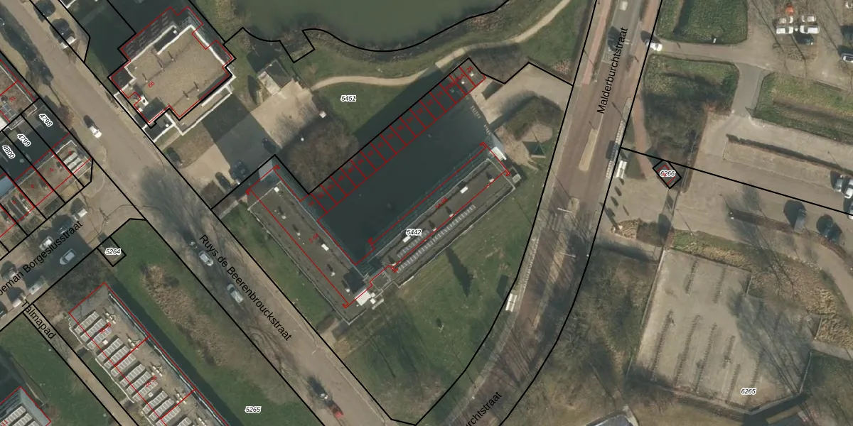 Het perceel waarop Malderburchtstraat 60 staat heeft een oppervlakte van 3776 m². Dit is een zeer groot perceel. De perceeloppervlakte wordt geregistreerd door het Kadaster. Gedetailleerde informatie over de maten van dit perceel kunt u vinden in het rapport Kadastrale kaart met maatvoering van Malderburchtstraat 60.