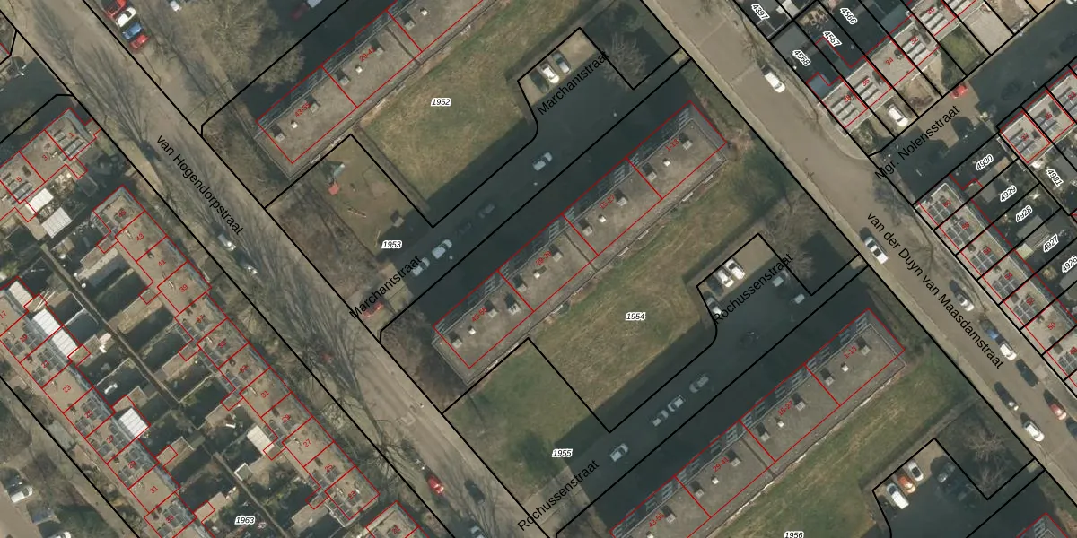 Het perceel waarop Marchantstraat 33 staat heeft een oppervlakte van 2685 m². Dit is een zeer groot perceel. De perceeloppervlakte wordt geregistreerd door het Kadaster. Gedetailleerde informatie over de maten van dit perceel kunt u vinden in het rapport Kadastrale kaart met maatvoering van Marchantstraat 33.