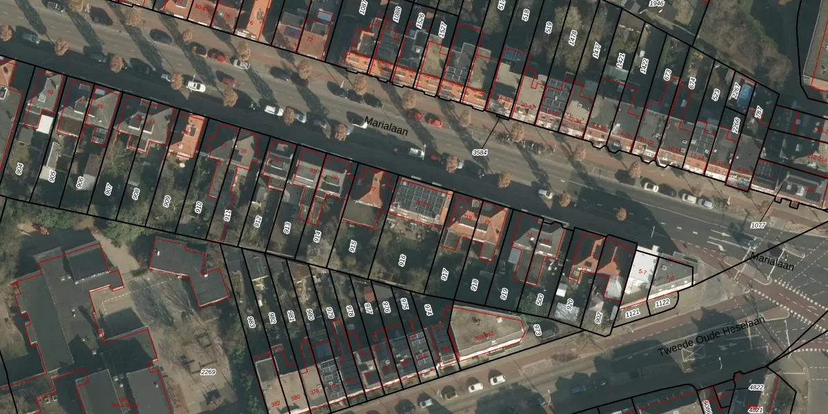 Het perceel waarop Marialaan 21 staat heeft een oppervlakte van 364 m². Dit is een groot perceel. De perceeloppervlakte wordt geregistreerd door het Kadaster. Gedetailleerde informatie over de maten van dit perceel kunt u vinden in het rapport Kadastrale kaart met maatvoering van Marialaan 21.