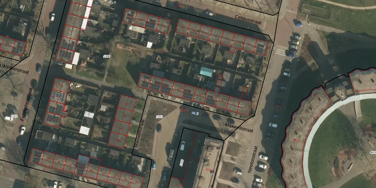 Het perceel waarop Maxwellstraat 12 staat heeft een oppervlakte van 8440 m². Dit is een zeer groot perceel. De perceeloppervlakte wordt geregistreerd door het Kadaster. Gedetailleerde informatie over de maten van dit perceel kunt u vinden in het rapport Kadastrale kaart met maatvoering van Maxwellstraat 12.