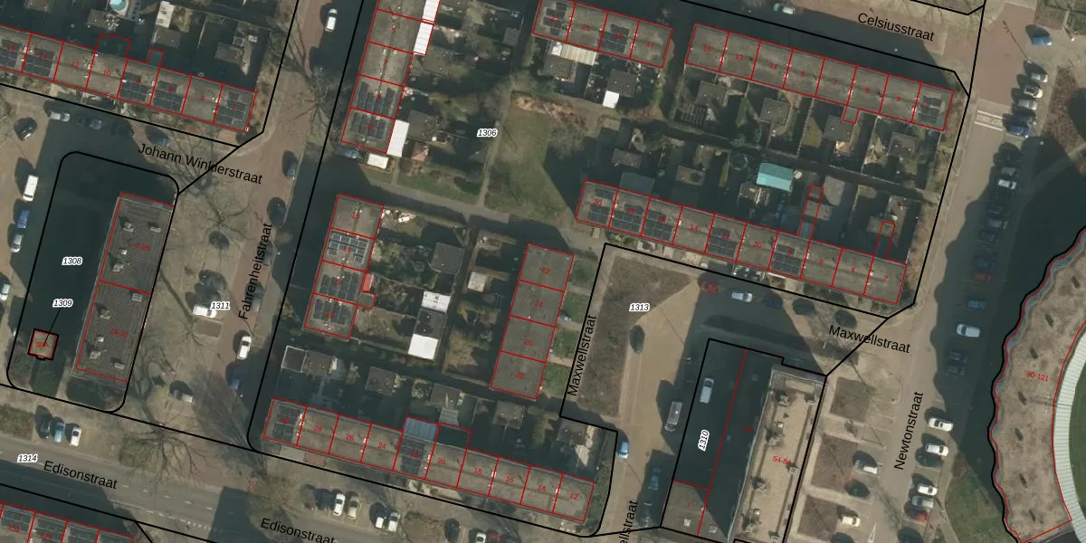 Het perceel waarop Maxwellstraat 22 staat heeft een oppervlakte van 8440 m². Dit is een zeer groot perceel. De perceeloppervlakte wordt geregistreerd door het Kadaster. Gedetailleerde informatie over de maten van dit perceel kunt u vinden in het rapport Kadastrale kaart met maatvoering van Maxwellstraat 22.