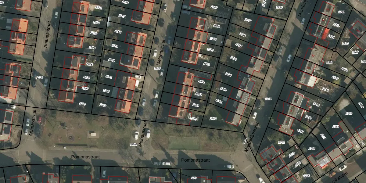 Het perceel waarop Meloenstraat 6 staat heeft een oppervlakte van 156 m². Dit is een middelgroot perceel. De perceeloppervlakte wordt geregistreerd door het Kadaster. Gedetailleerde informatie over de maten van dit perceel kunt u vinden in het rapport Kadastrale kaart met maatvoering van Meloenstraat 6.