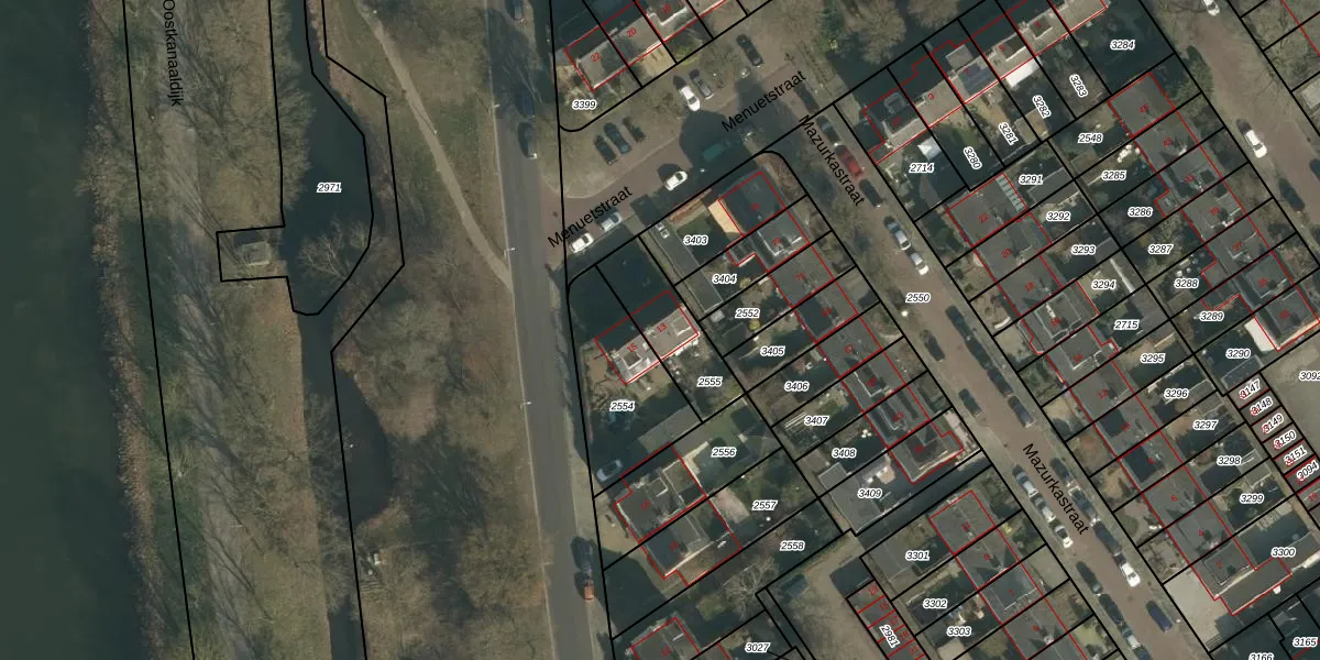 Menuetstraat 13 is gelegen op kadastraal perceel NBH00H2555. Deze kadastrale aanduiding is uniek en wordt gebruikt door het Kadaster om eigendomsrechten en andere zakelijke rechten vast te leggen. Het perceel maakt onderdeel uit van de kadastrale gemeente Neerbosch.