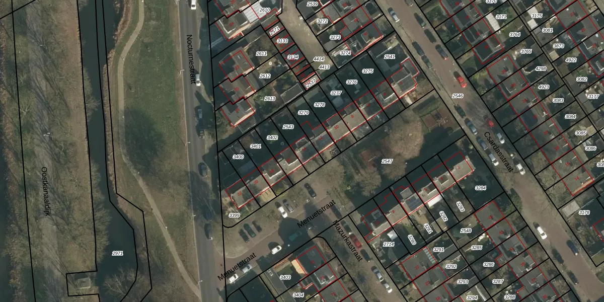 Menuetstraat 14 is gelegen op kadastraal perceel NBH00H2543. Deze kadastrale aanduiding is uniek en wordt gebruikt door het Kadaster om eigendomsrechten en andere zakelijke rechten vast te leggen. Het perceel maakt onderdeel uit van de kadastrale gemeente Neerbosch.