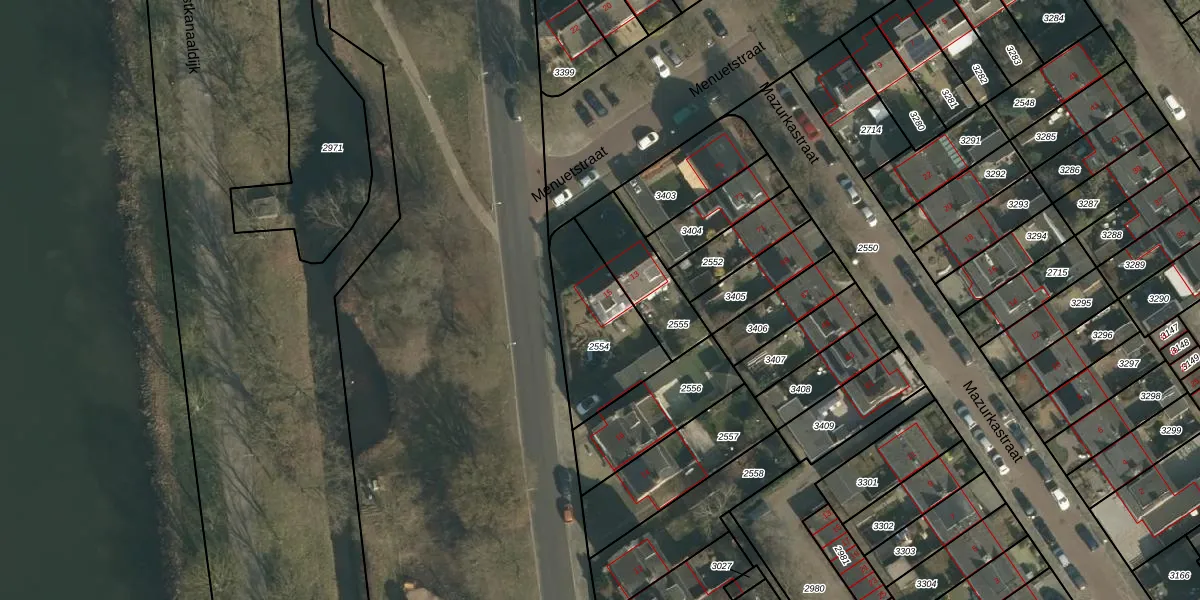 Het perceel waarop Menuetstraat 15 staat heeft een oppervlakte van 355 m². Dit is een groot perceel. De perceeloppervlakte wordt geregistreerd door het Kadaster. Gedetailleerde informatie over de maten van dit perceel kunt u vinden in het rapport Kadastrale kaart met maatvoering van Menuetstraat 15.
