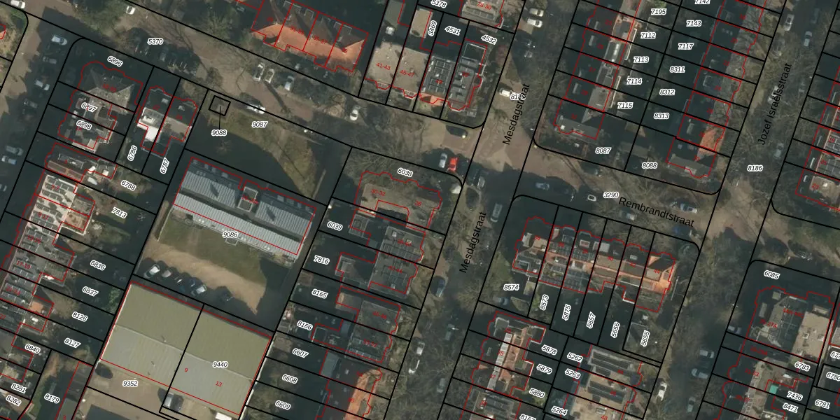 Het perceel waarop Mesdagstraat 36 staat heeft een oppervlakte van 387 m². Dit is een groot perceel. De perceeloppervlakte wordt geregistreerd door het Kadaster. Gedetailleerde informatie over de maten van dit perceel kunt u vinden in het rapport Kadastrale kaart met maatvoering van Mesdagstraat 36.