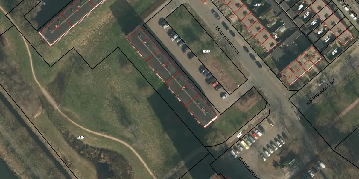 Het perceel waarop Middachtenstraat 21 staat heeft een oppervlakte van 9932 m². Dit is een zeer groot perceel. De perceeloppervlakte wordt geregistreerd door het Kadaster. Gedetailleerde informatie over de maten van dit perceel kunt u vinden in het rapport Kadastrale kaart met maatvoering van Middachtenstraat 21.