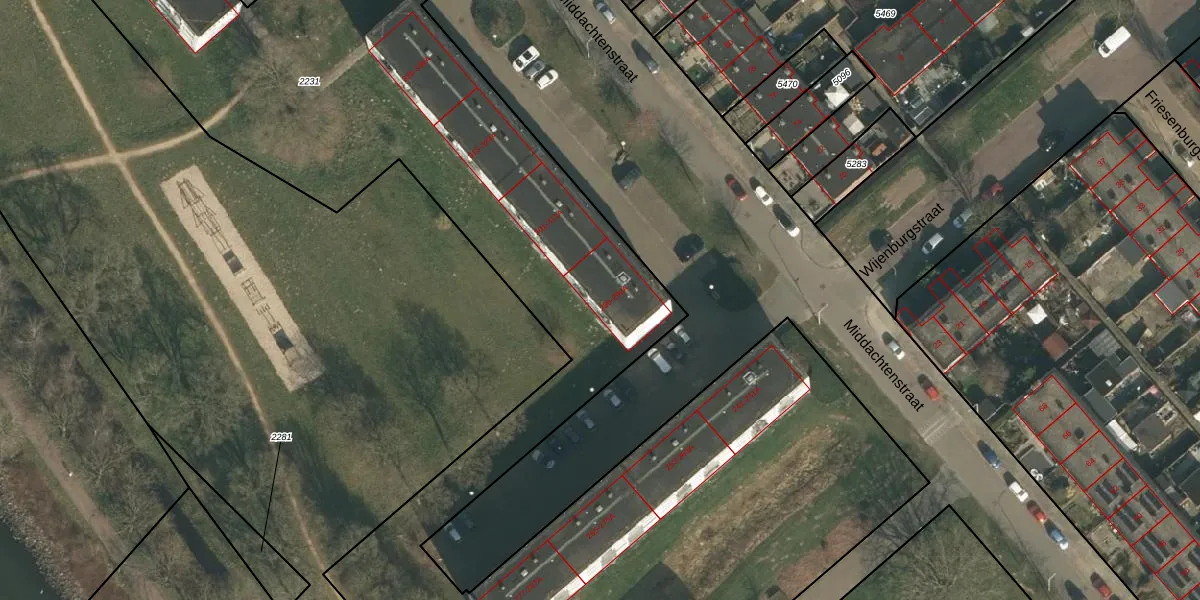 Het perceel waarop Middachtenstraat 291 staat heeft een oppervlakte van 1,1 ha. Dit is een zeer groot perceel. De perceeloppervlakte wordt geregistreerd door het Kadaster. Gedetailleerde informatie over de maten van dit perceel kunt u vinden in het rapport Kadastrale kaart met maatvoering van Middachtenstraat 291.