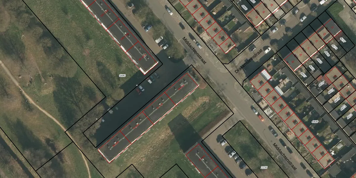 Het perceel waarop Middachtenstraat 49 staat heeft een oppervlakte van 9932 m². Dit is een zeer groot perceel. De perceeloppervlakte wordt geregistreerd door het Kadaster. Gedetailleerde informatie over de maten van dit perceel kunt u vinden in het rapport Kadastrale kaart met maatvoering van Middachtenstraat 49.