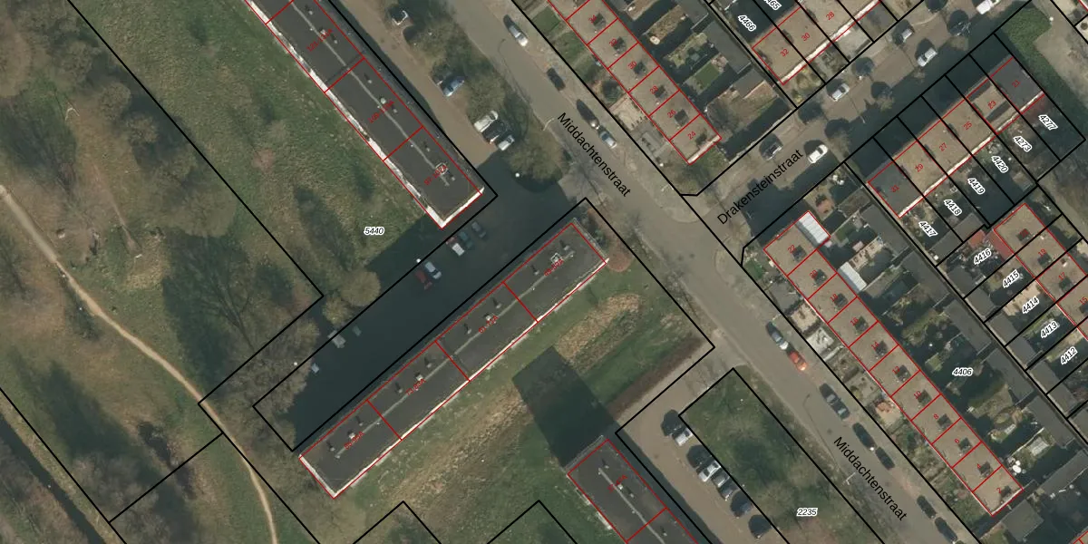 Het perceel waarop Middachtenstraat 51 staat heeft een oppervlakte van 9932 m². Dit is een zeer groot perceel. De perceeloppervlakte wordt geregistreerd door het Kadaster. Gedetailleerde informatie over de maten van dit perceel kunt u vinden in het rapport Kadastrale kaart met maatvoering van Middachtenstraat 51.