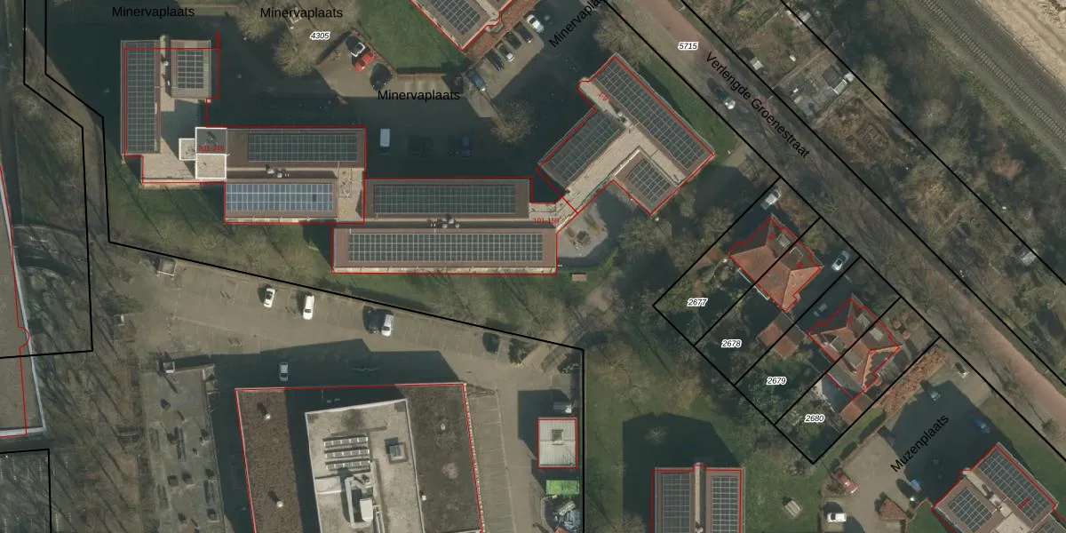 Het perceel waarop Minervaplaats 101 staat heeft een oppervlakte van 1,8 ha. Dit is een zeer groot perceel. De perceeloppervlakte wordt geregistreerd door het Kadaster. Gedetailleerde informatie over de maten van dit perceel kunt u vinden in het rapport Kadastrale kaart met maatvoering van Minervaplaats 101.
