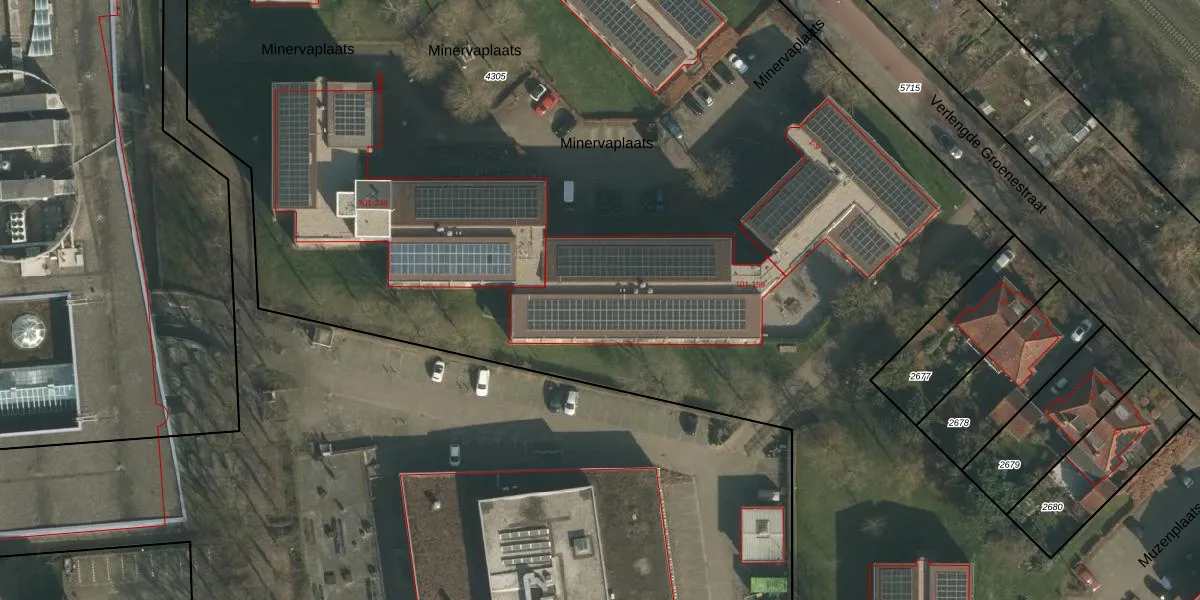 Het perceel waarop Minervaplaats 142 staat heeft een oppervlakte van 1,8 ha. Dit is een zeer groot perceel. De perceeloppervlakte wordt geregistreerd door het Kadaster. Gedetailleerde informatie over de maten van dit perceel kunt u vinden in het rapport Kadastrale kaart met maatvoering van Minervaplaats 142.