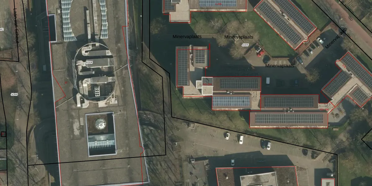 Het perceel waarop Minervaplaats 218 staat heeft een oppervlakte van 1,8 ha. Dit is een zeer groot perceel. De perceeloppervlakte wordt geregistreerd door het Kadaster. Gedetailleerde informatie over de maten van dit perceel kunt u vinden in het rapport Kadastrale kaart met maatvoering van Minervaplaats 218.