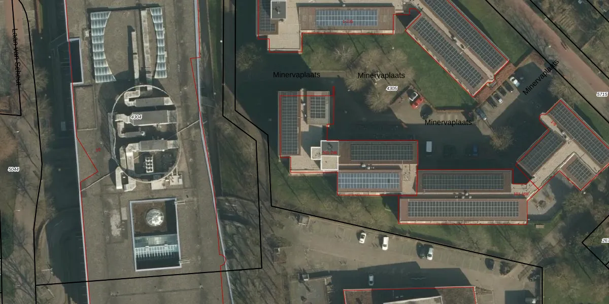 Het perceel waarop Minervaplaats 245 staat heeft een oppervlakte van 1,8 ha. Dit is een zeer groot perceel. De perceeloppervlakte wordt geregistreerd door het Kadaster. Gedetailleerde informatie over de maten van dit perceel kunt u vinden in het rapport Kadastrale kaart met maatvoering van Minervaplaats 245.