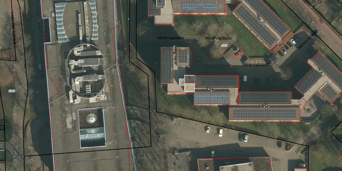 Het perceel waarop Minervaplaats 246 staat heeft een oppervlakte van 1,8 ha. Dit is een zeer groot perceel. De perceeloppervlakte wordt geregistreerd door het Kadaster. Gedetailleerde informatie over de maten van dit perceel kunt u vinden in het rapport Kadastrale kaart met maatvoering van Minervaplaats 246.