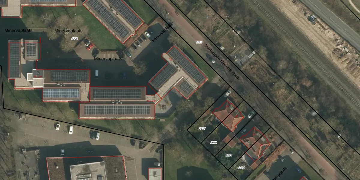 Het perceel waarop Minervaplaats 9 staat heeft een oppervlakte van 1,8 ha. Dit is een zeer groot perceel. De perceeloppervlakte wordt geregistreerd door het Kadaster. Gedetailleerde informatie over de maten van dit perceel kunt u vinden in het rapport Kadastrale kaart met maatvoering van Minervaplaats 9.