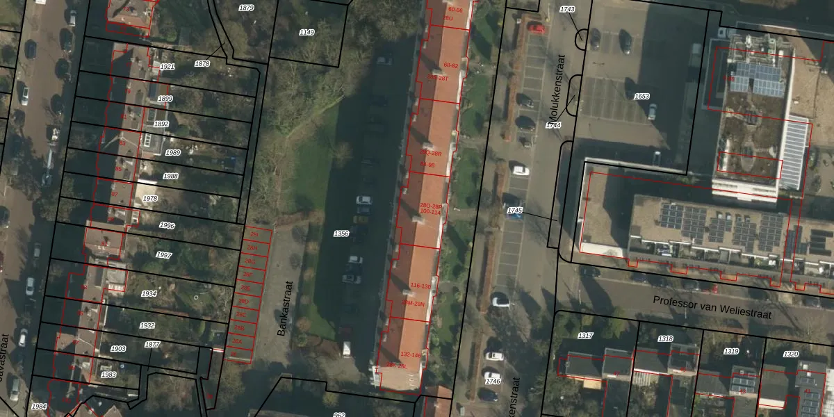 Het perceel waarop Molukkenstraat 102 staat heeft een oppervlakte van 5330 m². Dit is een zeer groot perceel. De perceeloppervlakte wordt geregistreerd door het Kadaster. Gedetailleerde informatie over de maten van dit perceel kunt u vinden in het rapport Kadastrale kaart met maatvoering van Molukkenstraat 102.