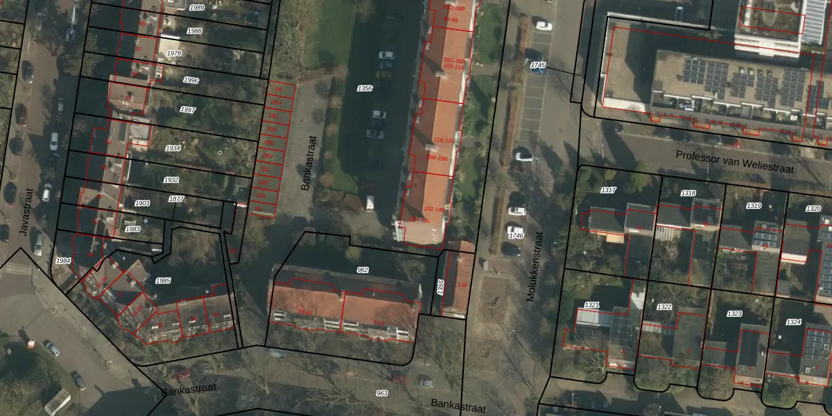 Het perceel waarop Molukkenstraat 142 staat heeft een oppervlakte van 5330 m². Dit is een zeer groot perceel. De perceeloppervlakte wordt geregistreerd door het Kadaster. Gedetailleerde informatie over de maten van dit perceel kunt u vinden in het rapport Kadastrale kaart met maatvoering van Molukkenstraat 142.
