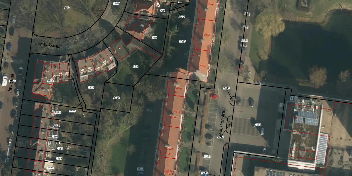 Het perceel waarop Molukkenstraat 60 staat heeft een oppervlakte van 5330 m². Dit is een zeer groot perceel. De perceeloppervlakte wordt geregistreerd door het Kadaster. Gedetailleerde informatie over de maten van dit perceel kunt u vinden in het rapport Kadastrale kaart met maatvoering van Molukkenstraat 60.