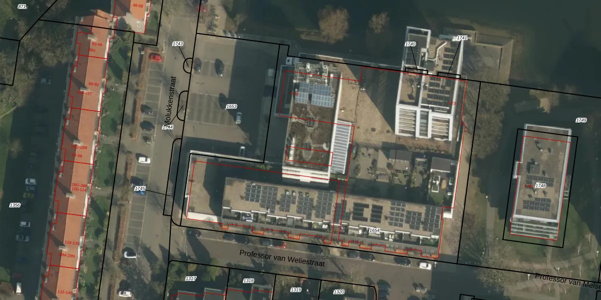 Het perceel waarop Molukkenstraat 7-A-25 staat heeft een oppervlakte van 4720 m². Dit is een zeer groot perceel. De perceeloppervlakte wordt geregistreerd door het Kadaster. Gedetailleerde informatie over de maten van dit perceel kunt u vinden in het rapport Kadastrale kaart met maatvoering van Molukkenstraat 7-A-25.