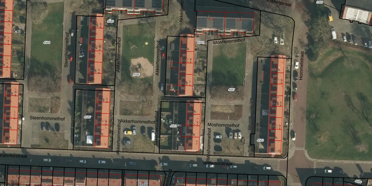 Moshommelhof 5 is gelegen op kadastraal perceel HTT02L4581. Deze kadastrale aanduiding is uniek en wordt gebruikt door het Kadaster om eigendomsrechten en andere zakelijke rechten vast te leggen. Het perceel maakt onderdeel uit van de kadastrale gemeente Hatert.