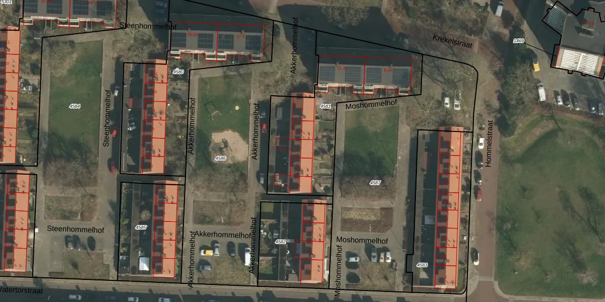 Moshommelhof 7 is gelegen op kadastraal perceel HTT02L4581. Deze kadastrale aanduiding is uniek en wordt gebruikt door het Kadaster om eigendomsrechten en andere zakelijke rechten vast te leggen. Het perceel maakt onderdeel uit van de kadastrale gemeente Hatert.