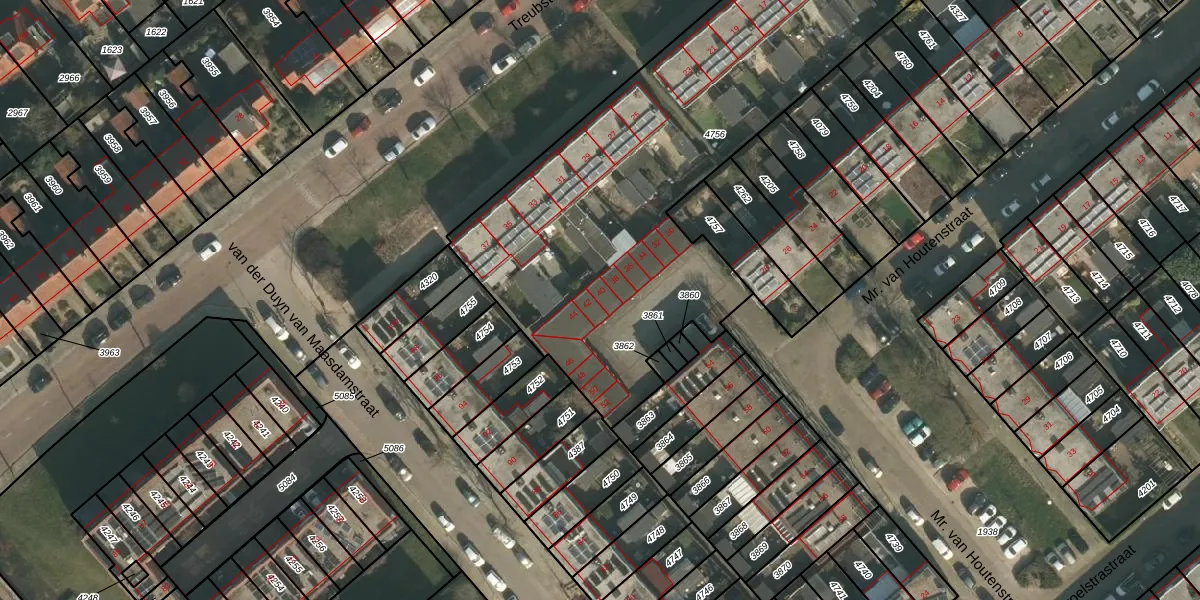 Mr. van Houtenstraat 40 is gelegen op kadastraal perceel HTT02D4756. Deze kadastrale aanduiding is uniek en wordt gebruikt door het Kadaster om eigendomsrechten en andere zakelijke rechten vast te leggen. Het perceel maakt onderdeel uit van de kadastrale gemeente Hatert.