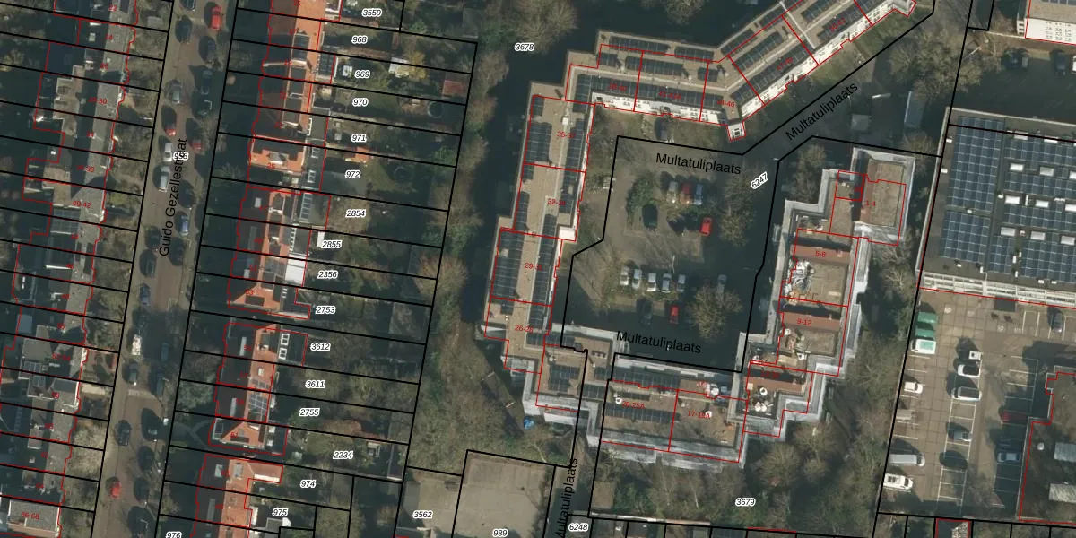 Het perceel waarop Multatuliplaats 31 staat heeft een oppervlakte van 4835 m². Dit is een zeer groot perceel. De perceeloppervlakte wordt geregistreerd door het Kadaster. Gedetailleerde informatie over de maten van dit perceel kunt u vinden in het rapport Kadastrale kaart met maatvoering van Multatuliplaats 31.