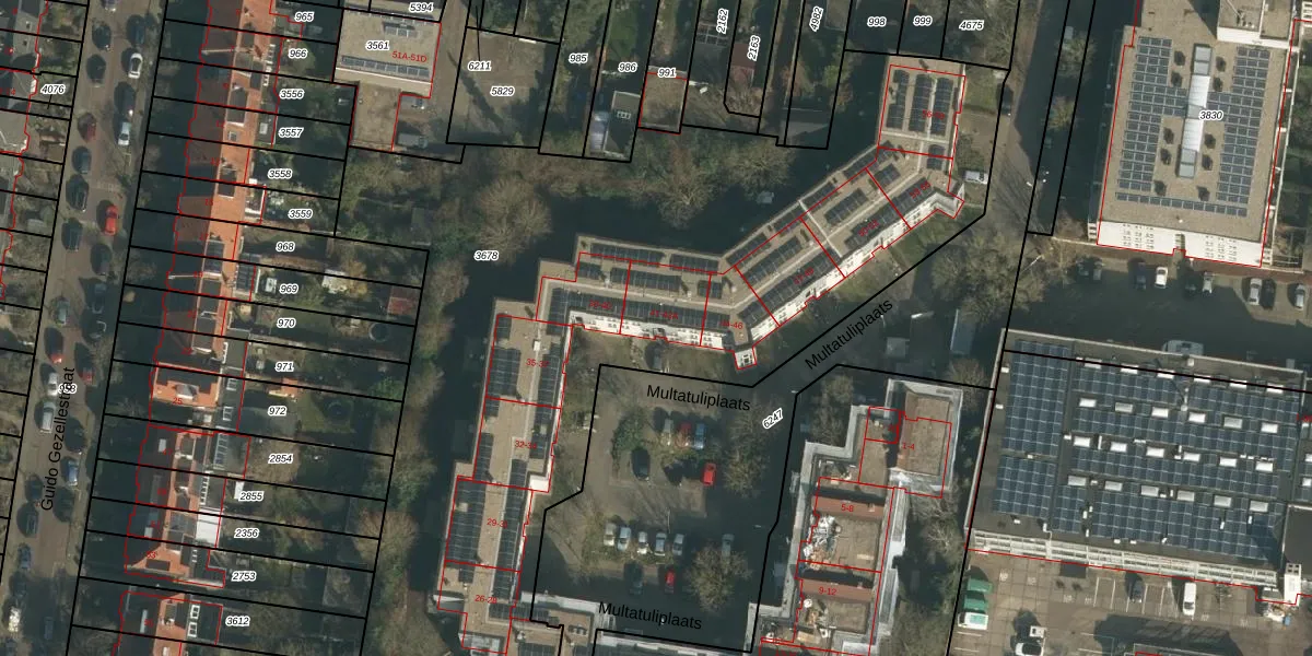 Multatuliplaats 43-A is gelegen op kadastraal perceel HTT02M3678. Deze kadastrale aanduiding is uniek en wordt gebruikt door het Kadaster om eigendomsrechten en andere zakelijke rechten vast te leggen. Het perceel maakt onderdeel uit van de kadastrale gemeente Hatert.