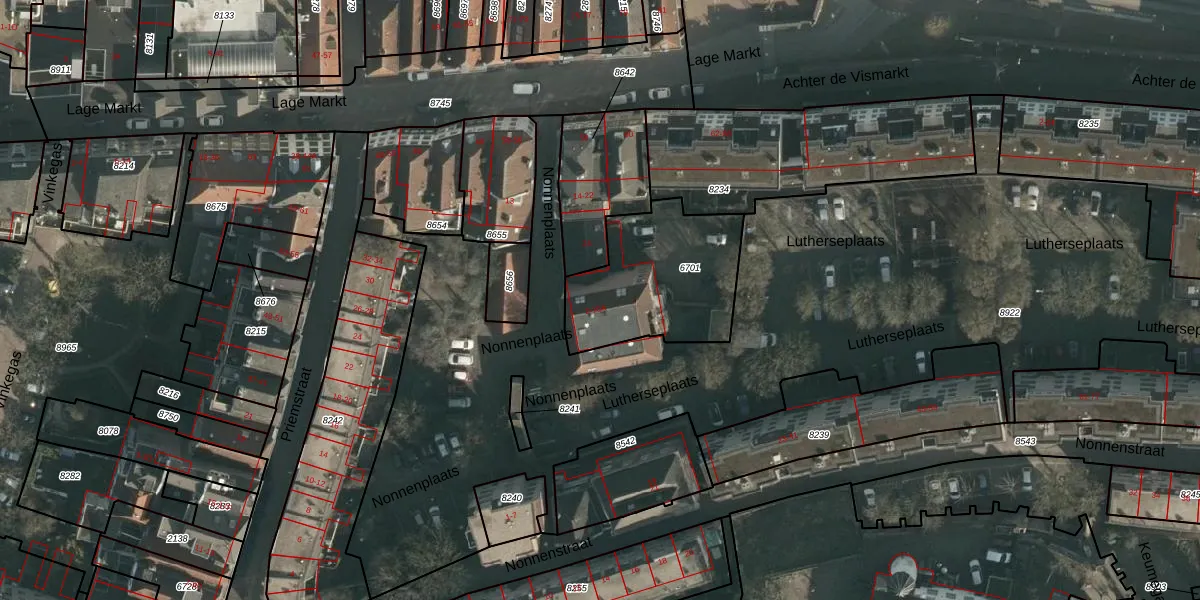 Het perceel waarop Nonnenplaats 6 staat heeft een oppervlakte van 590 m². Dit is een groot perceel. De perceeloppervlakte wordt geregistreerd door het Kadaster. Gedetailleerde informatie over de maten van dit perceel kunt u vinden in het rapport Kadastrale kaart met maatvoering van Nonnenplaats 6.