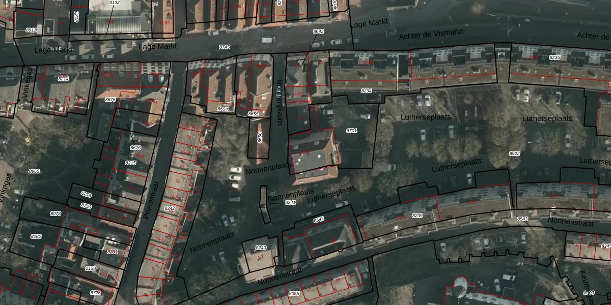 Het perceel waarop Nonnenplaats 8-A staat heeft een oppervlakte van 590 m². Dit is een groot perceel. De perceeloppervlakte wordt geregistreerd door het Kadaster. Gedetailleerde informatie over de maten van dit perceel kunt u vinden in het rapport Kadastrale kaart met maatvoering van Nonnenplaats 8-A.