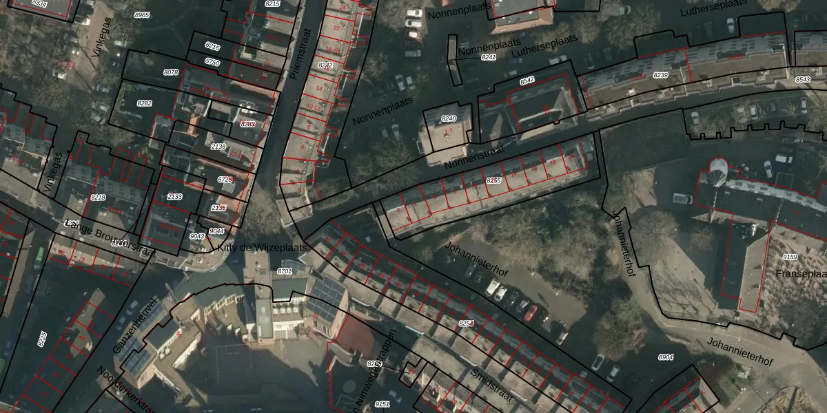 Nonnenstraat 4 is gelegen op kadastraal perceel NMG00C8255. Deze kadastrale aanduiding is uniek en wordt gebruikt door het Kadaster om eigendomsrechten en andere zakelijke rechten vast te leggen. Het perceel maakt onderdeel uit van de kadastrale gemeente Nijmegen.
