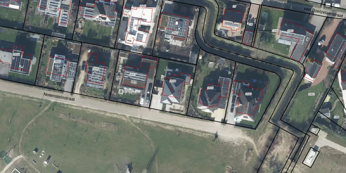 Het perceel waarop Notensteinstraat 11 staat heeft een oppervlakte van 655 m². Dit is een groot perceel. De perceeloppervlakte wordt geregistreerd door het Kadaster. Gedetailleerde informatie over de maten van dit perceel kunt u vinden in het rapport Kadastrale kaart met maatvoering van Notensteinstraat 11.