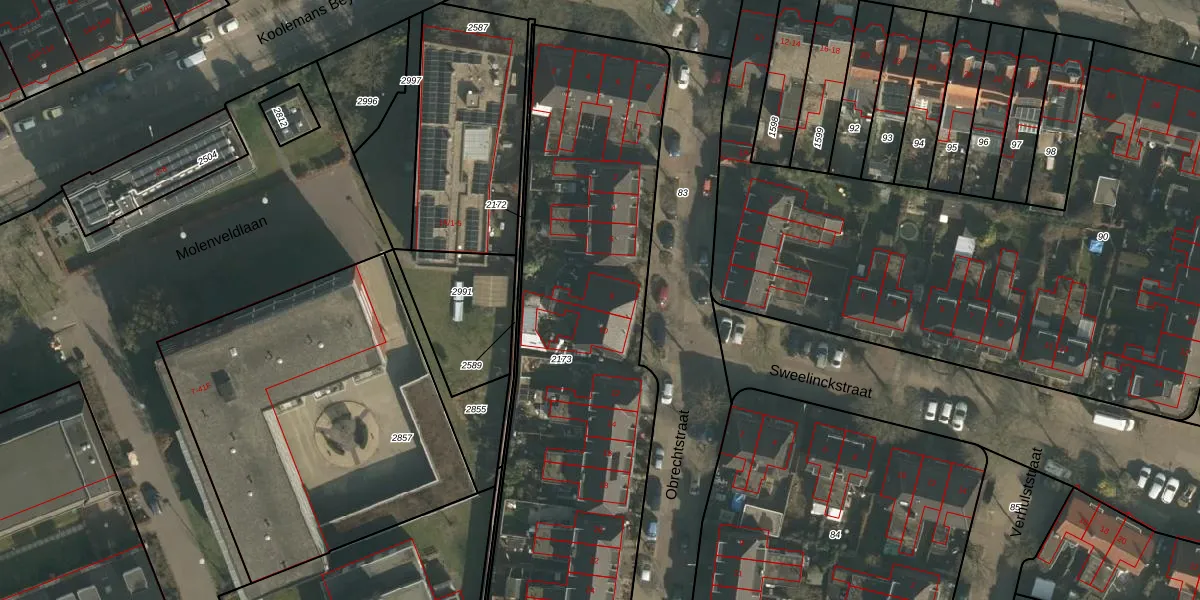 Het perceel waarop Obrechtstraat 8 staat heeft een oppervlakte van 2950 m². Dit is een zeer groot perceel. De perceeloppervlakte wordt geregistreerd door het Kadaster. Gedetailleerde informatie over de maten van dit perceel kunt u vinden in het rapport Kadastrale kaart met maatvoering van Obrechtstraat 8.
