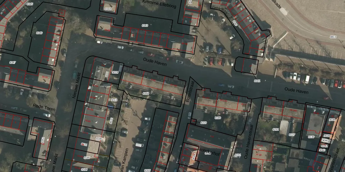 Het perceel waarop Oude Haven 10 staat heeft een oppervlakte van 590 m². Dit is een groot perceel. De perceeloppervlakte wordt geregistreerd door het Kadaster. Gedetailleerde informatie over de maten van dit perceel kunt u vinden in het rapport Kadastrale kaart met maatvoering van Oude Haven 10.