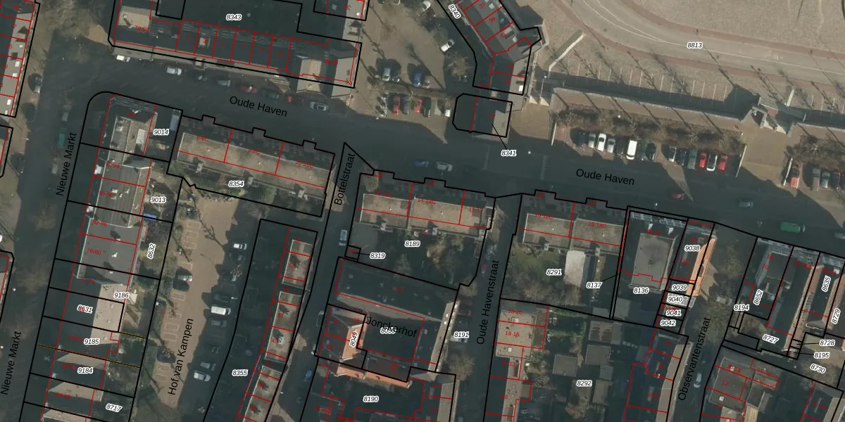 Het perceel waarop Oude Haven 14-A staat heeft een oppervlakte van 704 m². Dit is een groot perceel. De perceeloppervlakte wordt geregistreerd door het Kadaster. Gedetailleerde informatie over de maten van dit perceel kunt u vinden in het rapport Kadastrale kaart met maatvoering van Oude Haven 14-A.